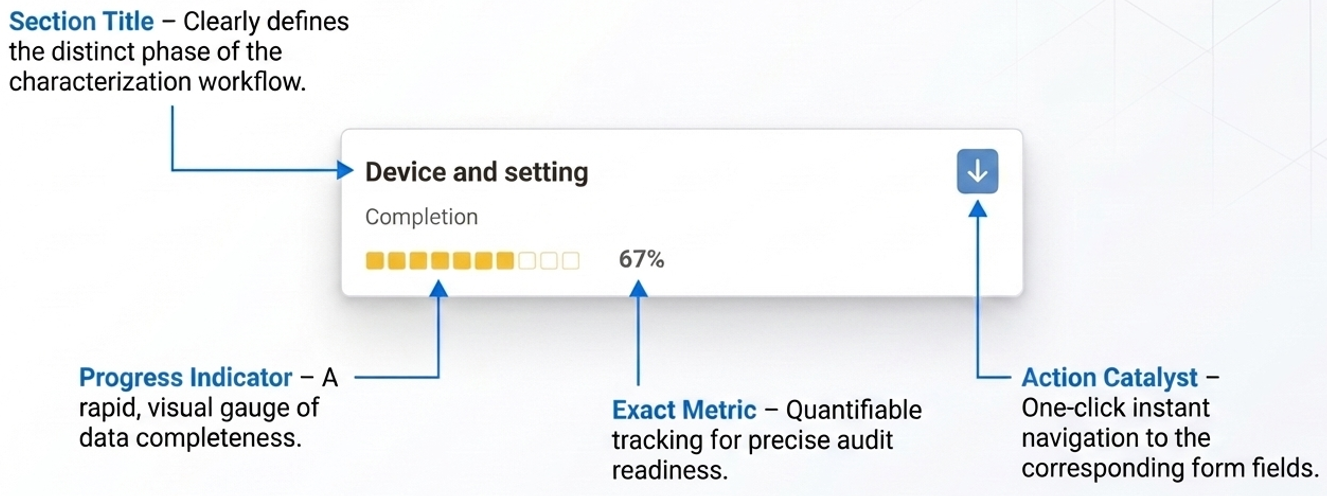 - Progress Visibility: Instantly see which sections are complete via color-coded bars and completion percentages.